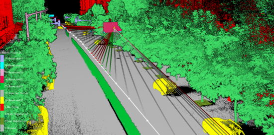 1:51 AIを使って点群画像から対象物(建物、街路樹、電線、車両、他)を色分けで分類
